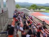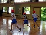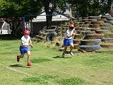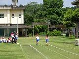 4チームに分かれてリレーをしています。リレーゾーンでリードしてバトンパスできるようになりました。