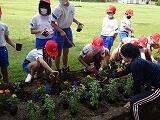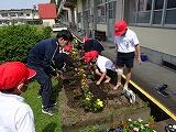 今週は学級園に花を植えました。百日草・日々草・マリーゴールド・サルビア・ブルーサルビアの色とりどりの花がとてもきれいです。