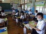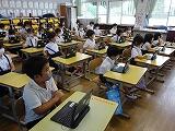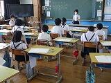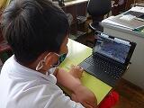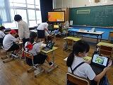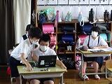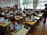 夏休みのタブレットの持ち帰りに備えて、情報モラルの授業をオンラインで行いました。職員室の萩原先生が各学級の自分用のタブレットと繋いで、家庭でのタブレットの使用方法などを説明しました。