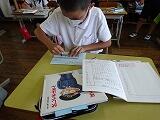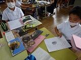ホタルについて図書資料やインターネットで調べ、分かったことをまとめています。ホタルについてのくわしい話が早く聞きたいですね。