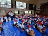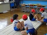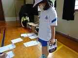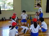 全学年が縦割り班を編制して、体力テストを行いました。あいにくの雨のため、室内でできる上体起こし・反復横跳び・立ち幅跳びを、一年生は握力・長座体前屈も行いました。異学年で助け合い励まし合いながら頑張っていました。