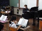 八田先生のピアノにあわせて、ピアニカで「かえるのうた」を輪奏しています。ちょうどカエルが鳴く季節ですね。