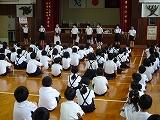 退職及び転出される3名の先生方との離任式がありました。東方小学校のために頑張ってくださった先生方に感謝し、これからの健闘をお祈りします。「がんばったがんばった・・・先生 フレーフレー・・・先生」