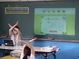 川野先生とALTのエムティア先生に12ある月や曜日について習っています。みんな英語の時間が大好きのようです。