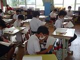 立腰で姿勢良く集中して筆を走らせています。みんな丁寧に書いています。