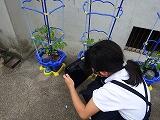先日、植えた野菜(ミニトマト・きゅうり・なす・ピーマン・さつまいも)が見る見るうちに大きく育ってきました。自分の鉢に植えたミニトマトの成長をタブレットを使って記録しています。