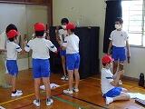 運動会に向けて、輪太鼓踊りの練習がスタートしました。いくつかのパートに分かれて、昨年に経験した6年生が5年生に丁寧に教えています。