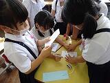 タブレットを使って、鳥の名前と写真の組み合わせを考えています。1年生もどんどんタブレットを使えるようになっています。今日はGIGAスクールサポーターの小水流さんも教えてくださいました。