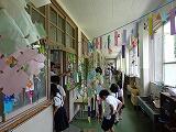 保護者の吉丸さんが笹竹を学級数分持ってきてくださいました。子供達は短冊に願い事を書いて飾っています。東方小学校の子供達みんなの願い事がかないますように・・・