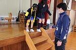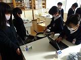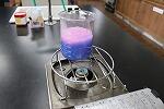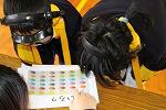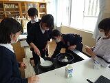 温度で色が変わるインクを使った対流の実験です。ゴーグルを着用し、安全に実験を行っています。この中に、未来の科学者がいるかもしれませんね!