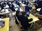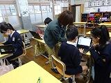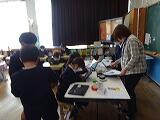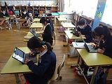 1年生もタブレットをがんばっています。近くの友達と助け合いながら操作しています。分からない時は先生が教えてくれます。
