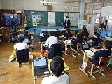 新しく2年生の担任になった畠中先生の紹介、家族の日の作文で最優秀賞を受賞した吉ノ薗さん(6年)の発表がありました。その後、ICT担当の萩原先生からタブレットを持ち帰った時の注意についての話がありました。