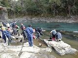 県総合博物館の黒木さんに小林市や霧島山の希少植物についての話を聞いた後、岩瀬川・谷之木川に行って、オオヨドカワゴロモの観察と保全活動をしました。たくさんのゴミを拾いました。