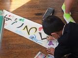 卒業制作のペンキ塗りの続きです。卒業生の名前や勉強に関するイラストを描いています。思い出に残りますね。