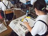 五十音を丁寧に書いています。友達がその様子をタブレットで撮影してくれます。