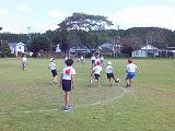 ゴム紐を使って走り高跳びの練習をしています。どんどん高さが上がって、新記録に挑戦です。