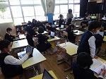 6年生へのお礼の作文をタブレットに入力しています。卒業式前に印刷して6年生に渡すようです。
