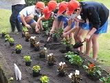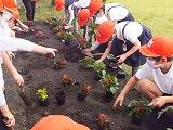 2年生が野菜の苗を植えました。たくさん収穫できるといいですね。
