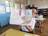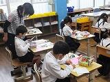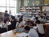 市立図書館の方から、本の分類など学校図書館で本の貸出・返却の時のきまりについて学びました。