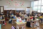 雨の校内遠足でしたが、教室でお弁当やおやつを食べました。コロナの影響で、いつもの給食のように全員前を向いて無言で食べました。みんなとってもえらいです。