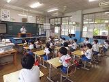 よんみろ会の読み聞かせの日です。1年生教室では野添校長先生が「おっとい たのかん」という東方にある田の神さあの話を諸県弁で語りました。