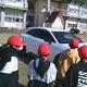 タブレットを使って、新聞記事の内容についてみんなで考えています。
