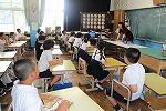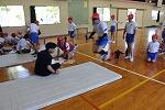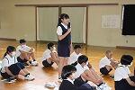 爽やかな天気の下、全校児童縦割り班で体力テストを行いました。6年生がリーダーとなり、50m走、ソフトボール投げ、上体起こし、立幅跳び、反復横跳びに取り組みました。