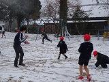 急遽、朝の活動は全学年で雪遊びにしました。みんな雪だるまを作ったり雪合戦をしたりして、とても楽しそうです。東方小の年神様からの雪のプレゼントですね。