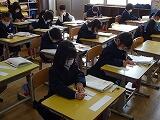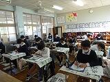 今週は全学年、書き初め会を行います。1年生は硬筆で「ふじ山」、6年生は毛筆で「感謝」と書きます。みんな姿勢も良く、丁寧に心を込めて書いています。