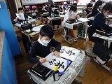 今週は全学年、書き初め会です。4年生は毛筆で「出発」、5年生は毛筆で「希望」と書きます。一筆入魂で心を込めて書いています。