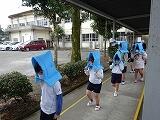 東方小と小林こすもす支援学校が合同で予告なしの地震の避難訓練を行いました。休み時間に教室ではないそれぞれの場所から避難しました。みんなでダンゴムシのポーズになって頭を守る練習もしました。