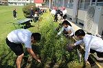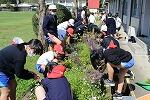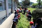 業間の時間に、春休みの間に伸びた花だんの草を、皆でむしりました。みんなしっかりと頑張り、きれいにできました!