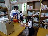 一年生が図書室の本を借りています。梅雨入りして外で遊べない時はゆっくりと本を読むのもいいですね。