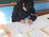 全学年で書き初め大会をしました。1・2年生は筆ペンで、3~6年は毛筆で書きます。一筆入魂で、ていねんに書いています。