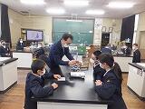 津曲教頭先生と金属を溶かす水溶液についての実験をしています。予想はあたったかな・・・