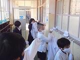 異学年で協力しながら、もくもくと無言掃除をしています。寒い冬でもがんばっています。
