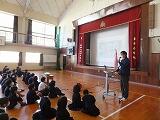 12月の全校朝会は校長先生が読書の大切さについて話をしました。月目標「寒さに負けずに進んで運動しよう」について宇藤山先生が話をしました。ポスターコンクールや剣道大会などの表彰もありました。