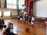 終了式では校長先生がすす払い・門松・しめ縄・鏡餅・お年玉など正月のならわしについて話をしました。各学年の代表がいじめをなくすための人権標語を発表しました。