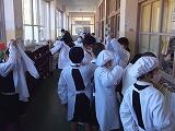 異学年で協力しながら、もくもくと無言掃除をしています。寒い冬でもがんばっています。