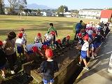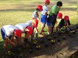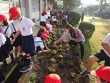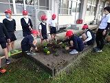 来週の花植えに向けて、花壇の花を抜いて肥料を入れます。夏から秋にかけて学校を彩ってくれたたくさんの花々(サルビア、ブルーサルビア、日々草、マリーゴールド)に感謝です。