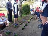 小林秀峰高校が育てたパンジー・ビオラを学級園の前列に植えました。後列にはノースポール・ナデシコ・ストックを植える予定です。