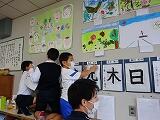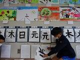 3年生から初めて習字の時間はあります。今日は「元」という文字を習字で書いて、描いた作品を掲示しています。上手に書けたかな・・・