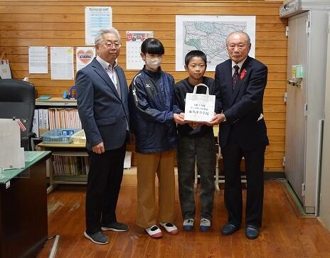 本校では、運営委員会の児童を中心に赤い羽根共同募金に取り組みました。12月17日(水)、小林市社会福祉協議会の会長倉田様と福田様に来校いただき、集まったお金をお渡ししました。