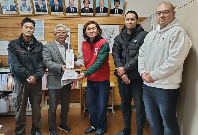 1月15日(木)、厄年を迎えられた平成十年度卒業生の代表の方々が前夜の餅勧進を終えられ、学校へ寄付金を届けてくださいました。ありがとうございました。大切に使わせていただきます。