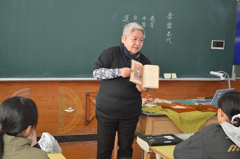 1月21日(水)、講師として「かたりべグループ南の風」の常盤泰代先生をお迎えし、6年生で平和学習を行いました。分かりやすい資料をもとに戦時中の生活や永久津にも疎開してきた児童がいたことなどを教えていただく中で、平和や権利の尊さを学ぶことができました。大変、貴重な学習機会となりました。常盤先生ありがとうございました。