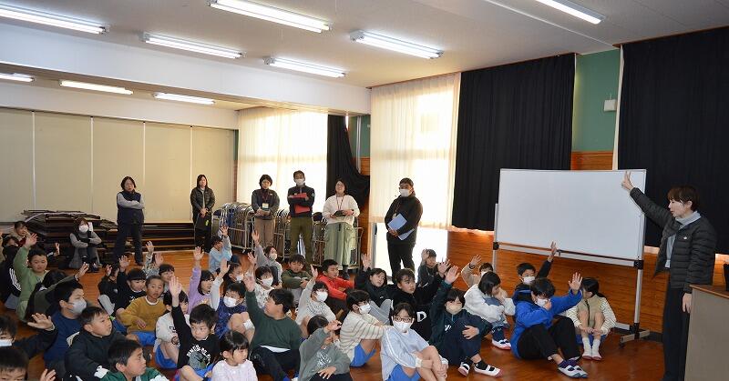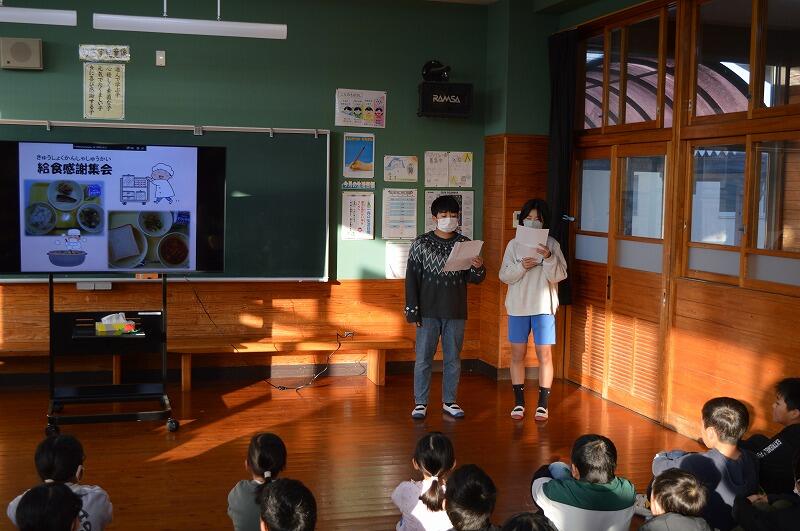 1月28日(水)、給食感謝集会を行いました。東方学校給食センター栄養教諭の斉藤夢子先生をお迎えし、給食にまつわる話をしていただきました。毎年行っている集会ですが、給食への感謝の気持ちを育む貴重な機会となっています。