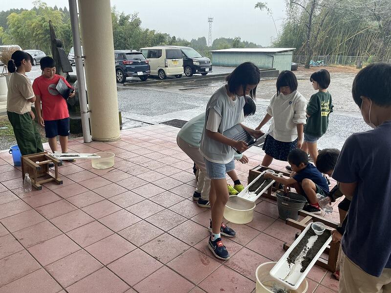 10月22日(火)、5年生、流れる水のはたらきについて実験中です。