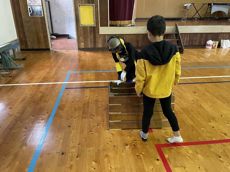 12月10日(火)に火災避難訓練を行いました。御池青少年自然の家の方々から、消火器体験や煙模擬体験などをとおして、火事から身を守ることについて指導していただきました。