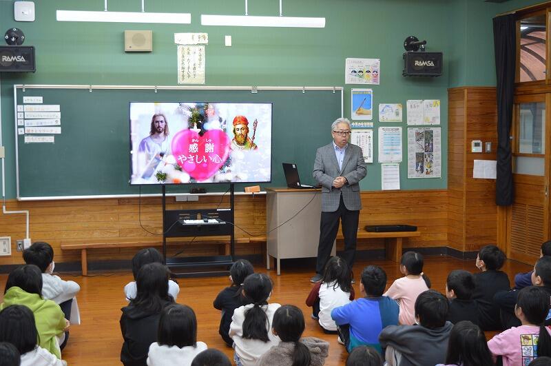 翌日から始まる冬休みを前に全校集会を行いました。クリスマスや冬休みの生活の話、表彰を行いました。安全や健康に気を付けながら楽しい冬休みを過ごしてほしいです。
