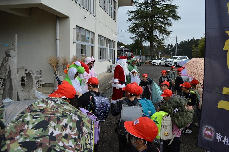 12月24日(火)、2学期前半が終了しました。そして今年も永久津小にサンタがやってきました!